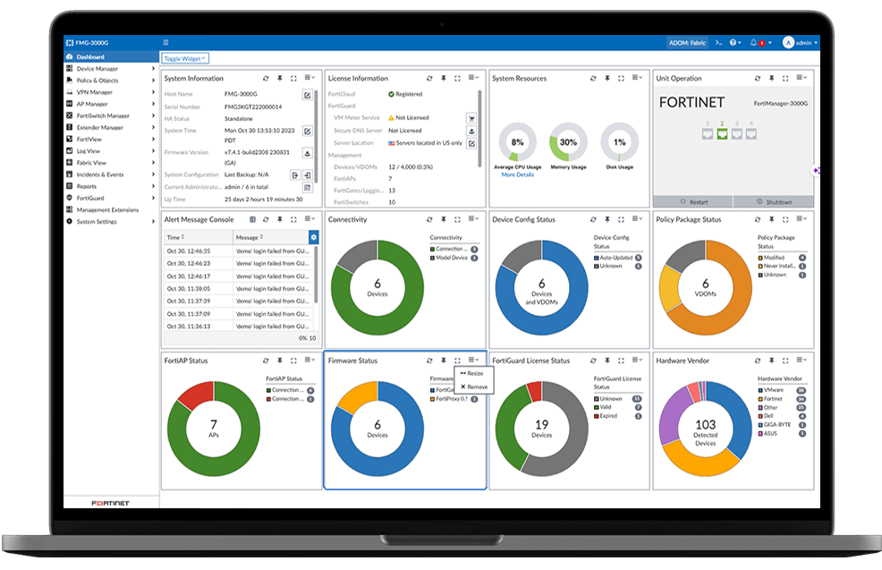 FortiManager signaleert direct bij niet-beschikbaarheid van netwerkcomponenten, zodat u proactief kunt handelen. Daarnaast biedt het uitgebreide rapportagemogelijkheden voor diepgaand inzicht in netwerkprestaties en beveiliging.
