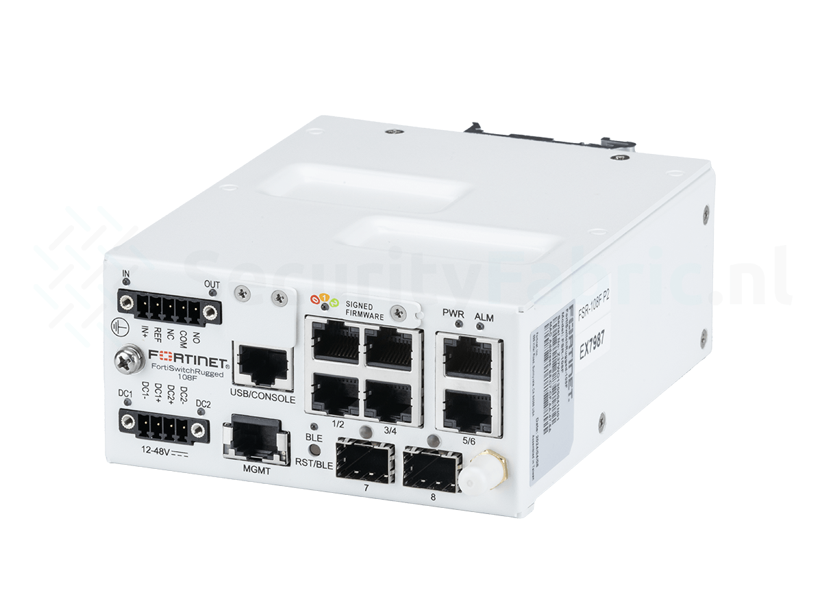 De FortiSwitch Rugged 108F is een robuuste, managed Layer 2/3-switch, speciaal ontworpen voor uitdagende industriële (OT) en buitentoepassingen. Met een IP40 rating is deze switch ideaal voor veeleisende omgevingen waar betrouwbaarheid en snelle connectiviteit cruciaal zijn.