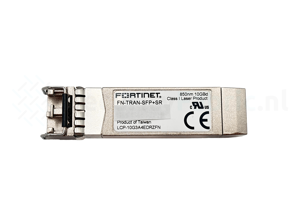 De FN‑TRAN‑SFP+SR is een 10 GE SFP+ transceivermodule van Fortinet voor korte-afstand verbindingen via OM3/OM4 Multi Mode Fiber (MMF). De module ondersteunt het 10GBase‑SR protocol met een maximaal bereik tot 550 meter en is ontworpen voor gebruik in systemen met SFP+‑slots.